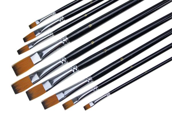 - Плоские. Мазки такой кистью получаются ровными. Кисть отлично подходит для быстрой проработки крупных поверхностей холста.
