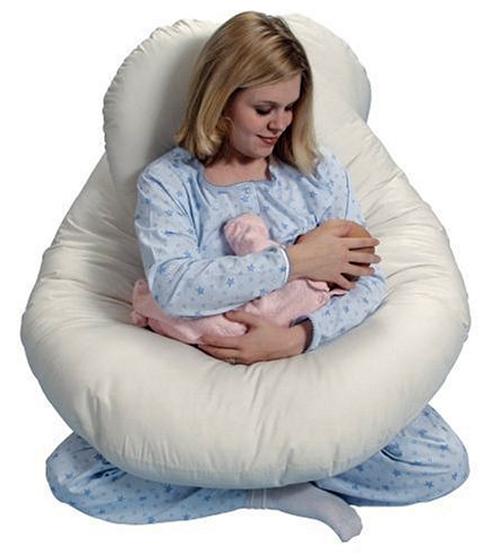 После родов такой валик можно применять для кормления новорожденных. Для этого мама должна сесть и обернуть валик вокруг тела. Один край подушки оказывается под спиной, а другой – на коленях. Спина, плечи и шея при этом находятся в расслабленном состоянии. Малыша можно положить на подушку и не держать руки в напряжении.