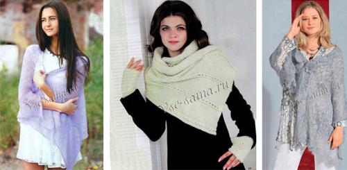 Вязаные шали всегда были тем видом одежды, которые делают образ женщины загадочным и таинственным. В современной моде они все так же популярны, как и несколько столетий назад. Не надо думать, что шали носят только бабушки в деревнях. Сейчас это уже не пережиток прошлого, а очень модный и красивый элемент одежды.