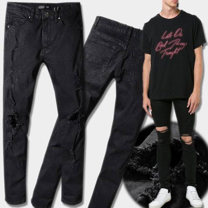 - цвет. Чёрный цвет с самыми разнообразными принтами, вставками и рванкой — на пике! Дальше следует цвет индиго или небесно-голубые оттенки джинсов. Плюс стоит обращать внимание на тёмно-синие модели, но если вдруг попадутся джинсы, в которых удачно скомбинированы цвета, то брать их стоит не раздумывая;